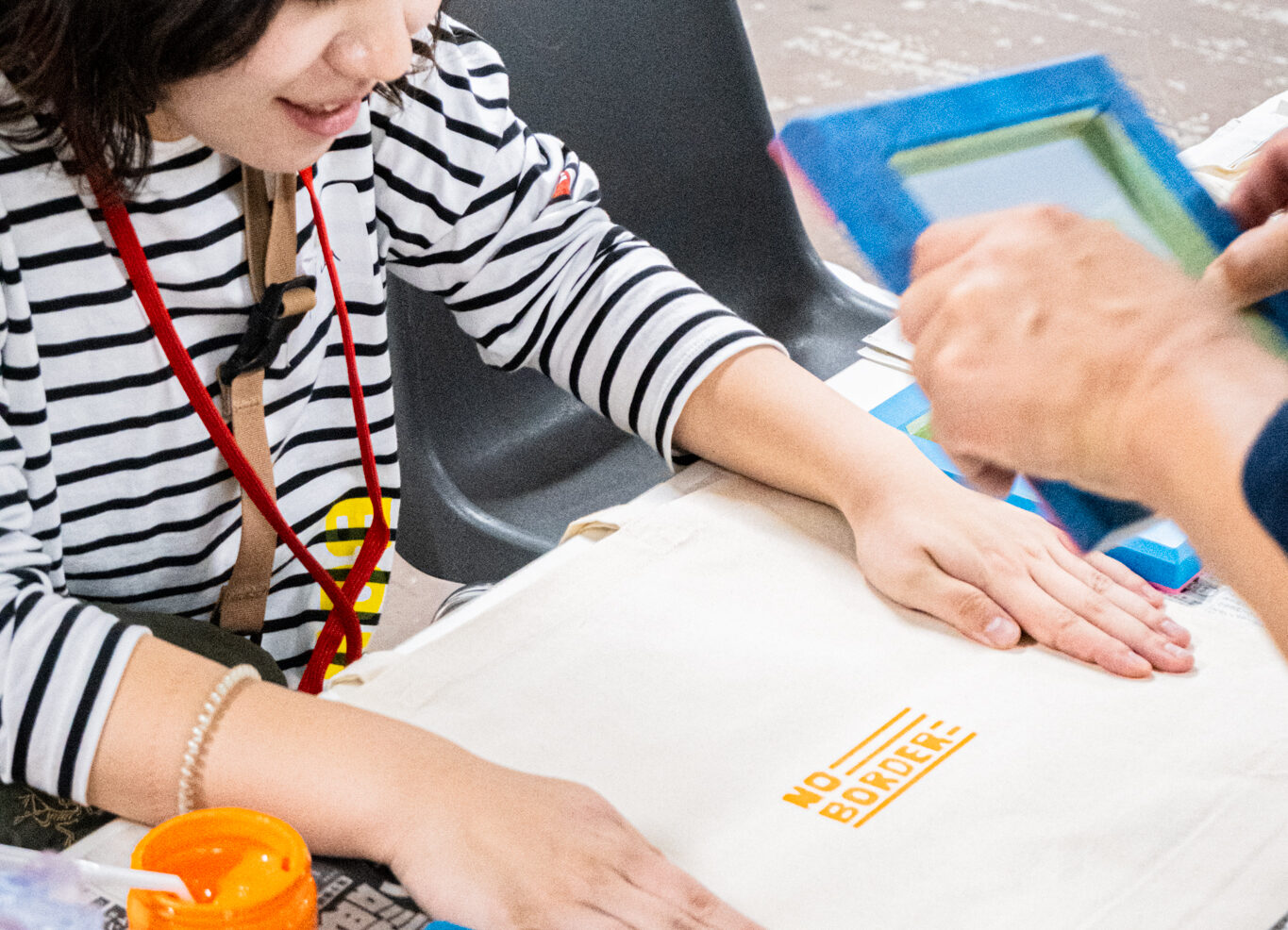 そして、この日のドレスコードは、創作ヴィレッジこるり村さんがデザインしてくれた「NO BORDER」のロゴをプリントした Tシャツ。今回のイベントで初お披露目となったこのロゴには、平安伸銅がこれから大切にしたい想いを込めています。
