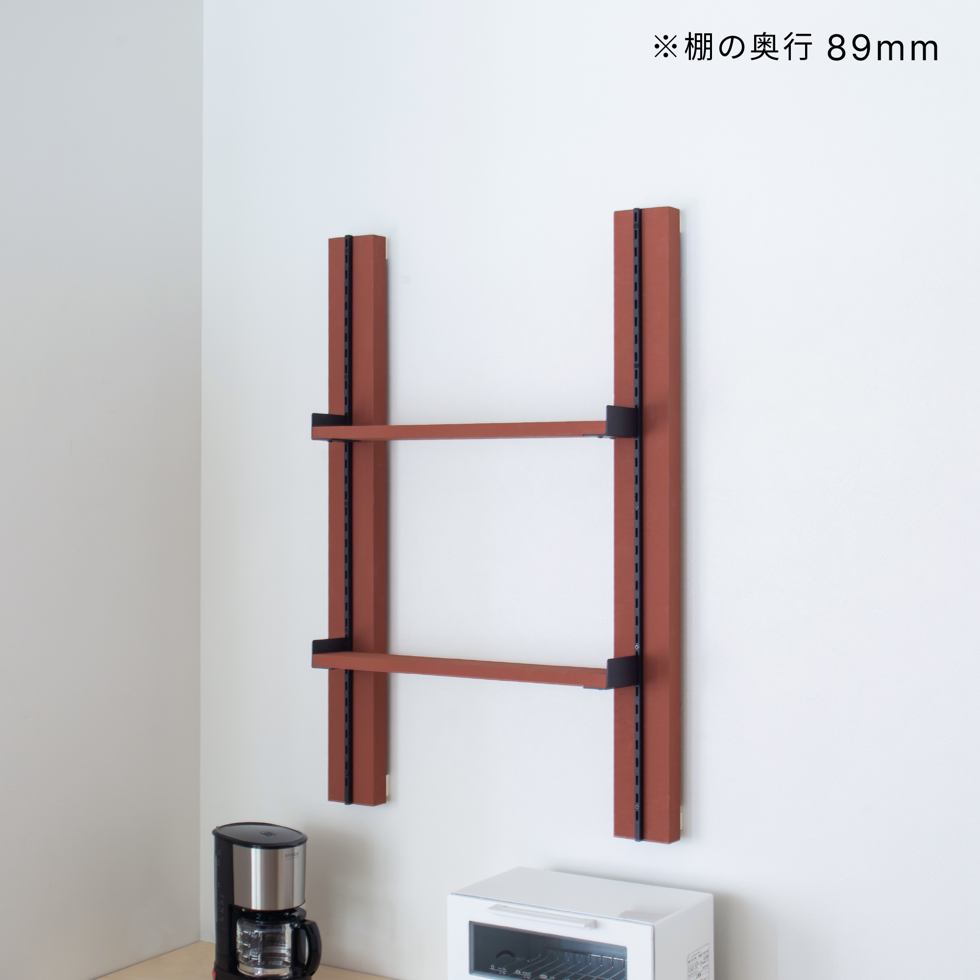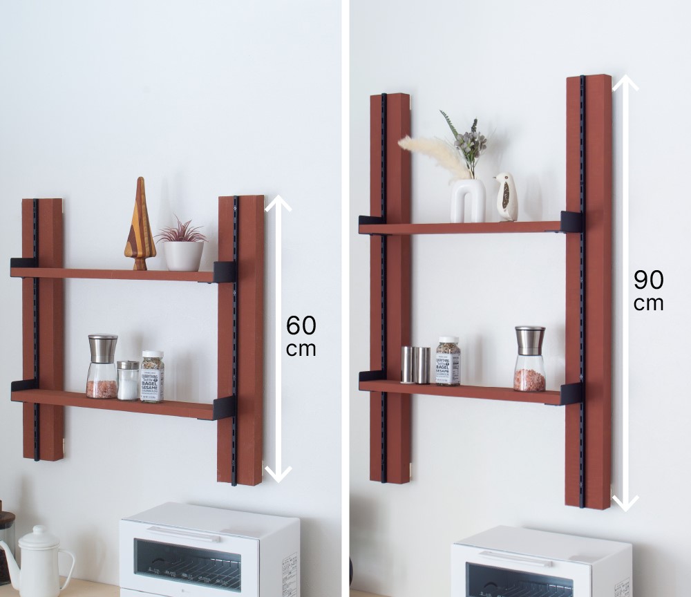 本製品は、棚幅を50cmから110cmの間で細かいピッチでサイズオーダーできるため、取り付けたい場所にぴったりの棚を実現します。また、高さは60cmと90cmの2種類、奥行は89mm、178mm、267mmの3種類から選べ、木材カラーも6種類ご用意。ベーシックなカラーからお部屋のアクセントになるカラフルなカラーまで幅広くラインナップしています。