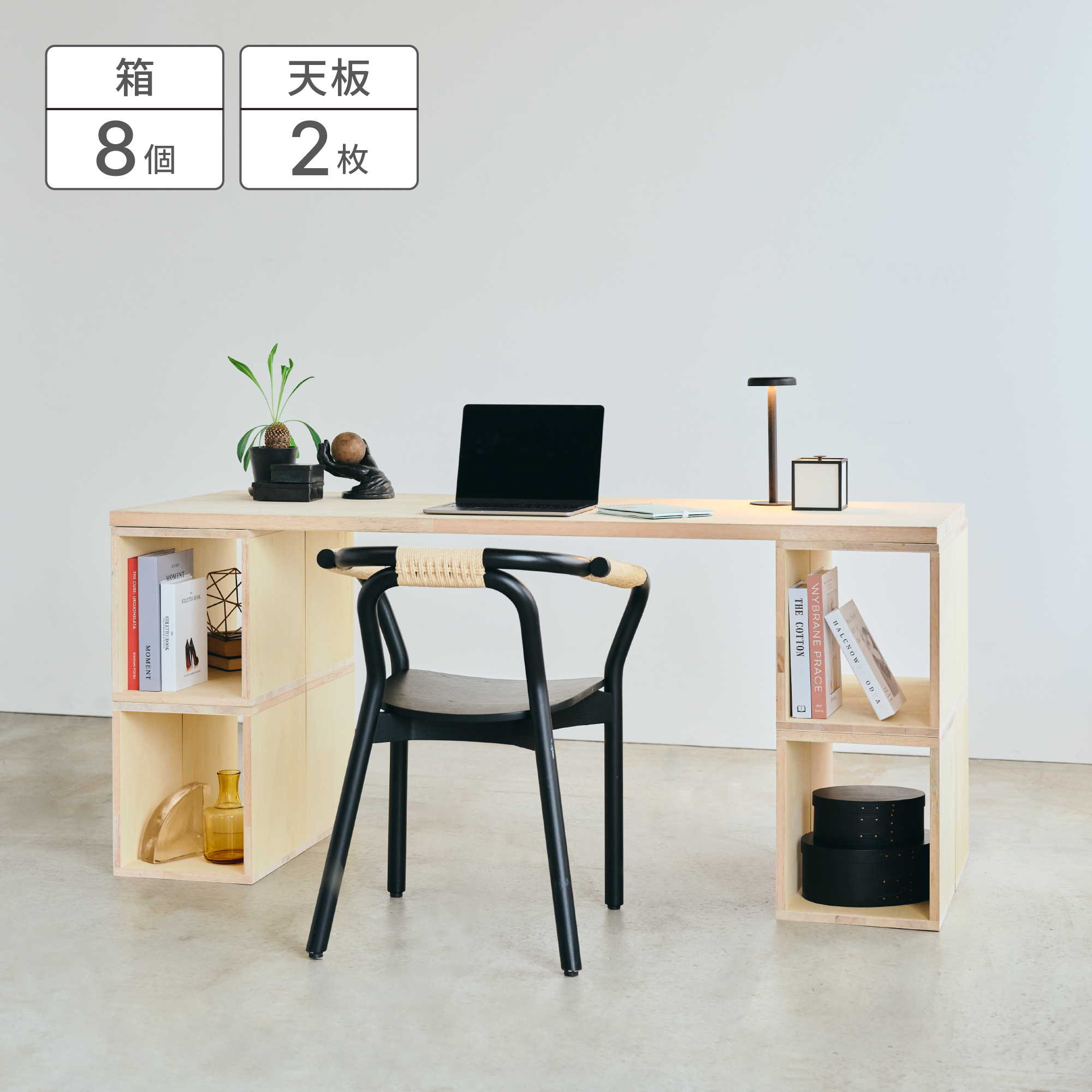 高さが35cmなのは、2個積み重ねて専用の天板を被せると、ちょうどいい高さのデスクになるよう設計されているためです。