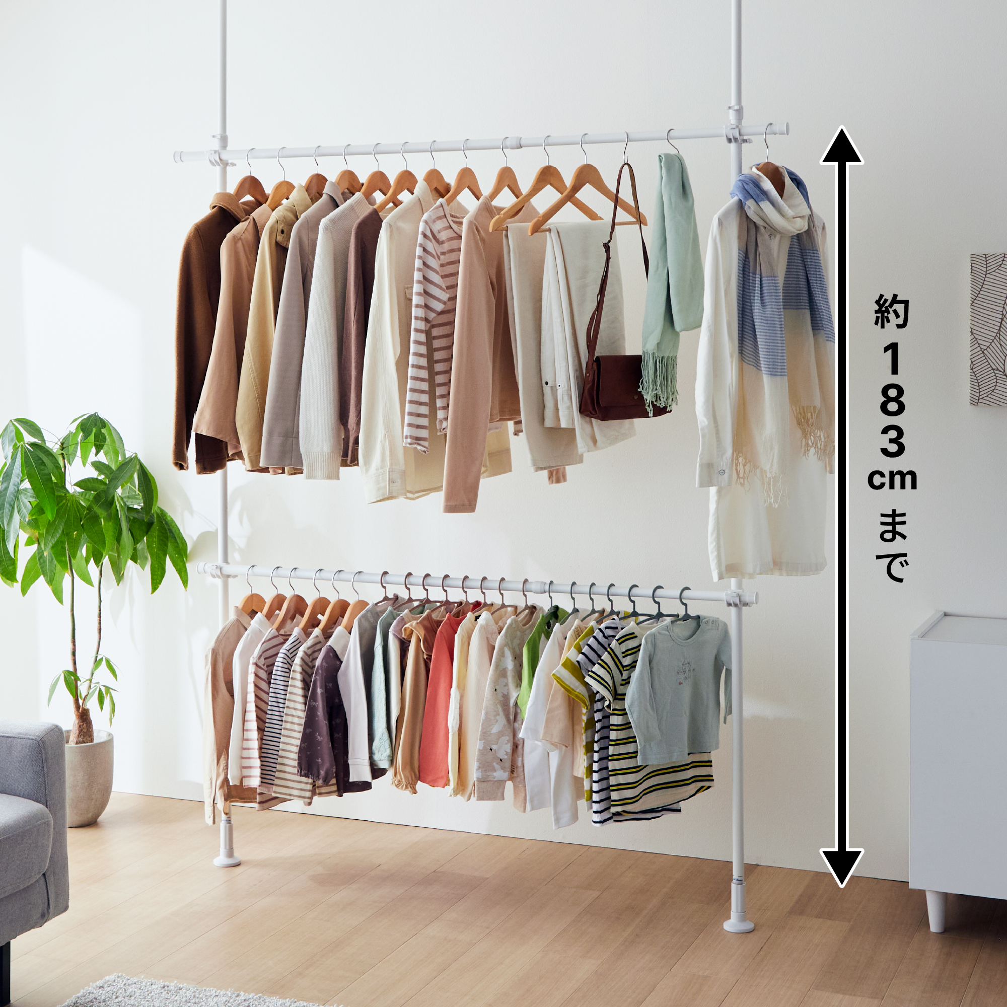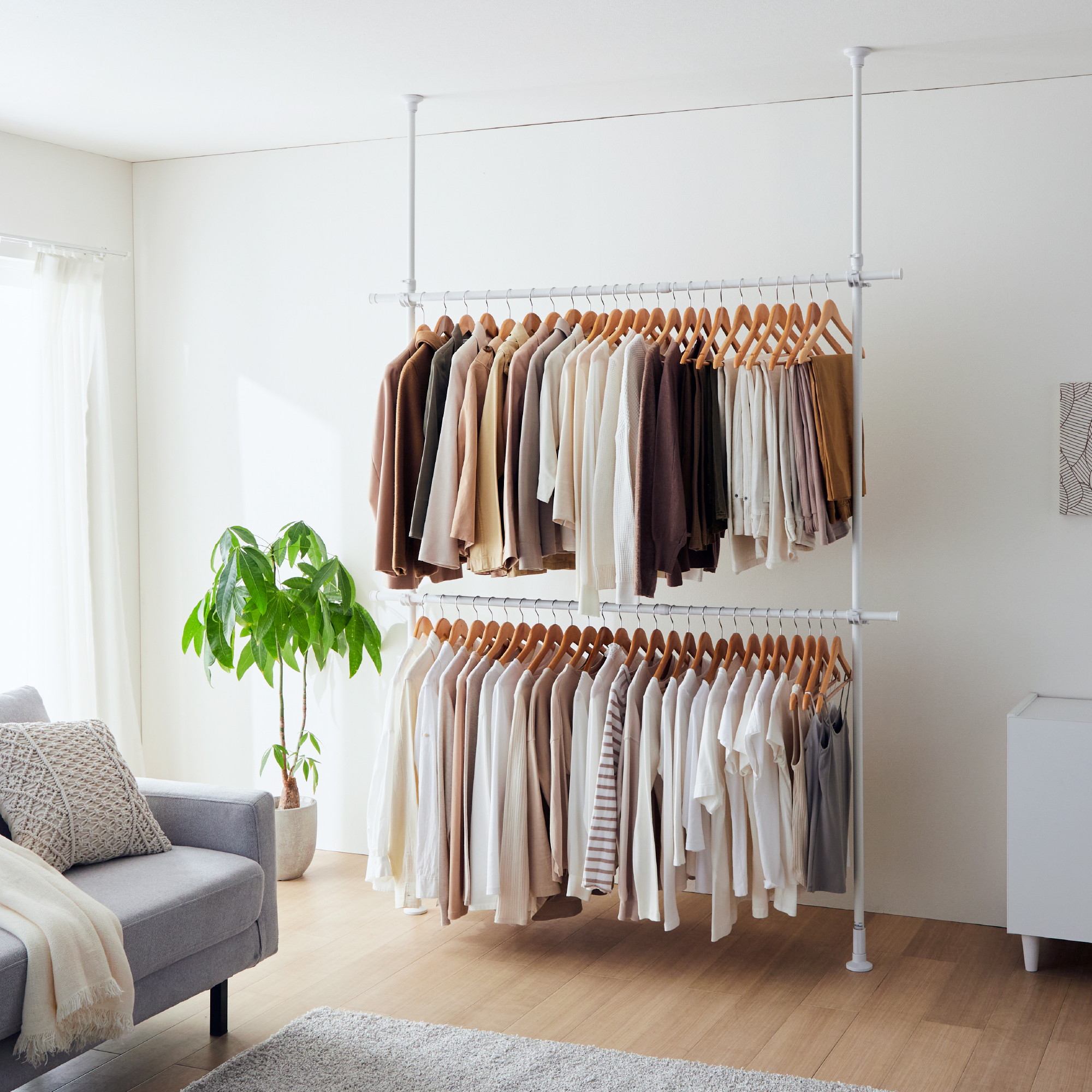 幅と高さを自由に変えられるワイドタイプのつっぱりハンガーラックを新発売