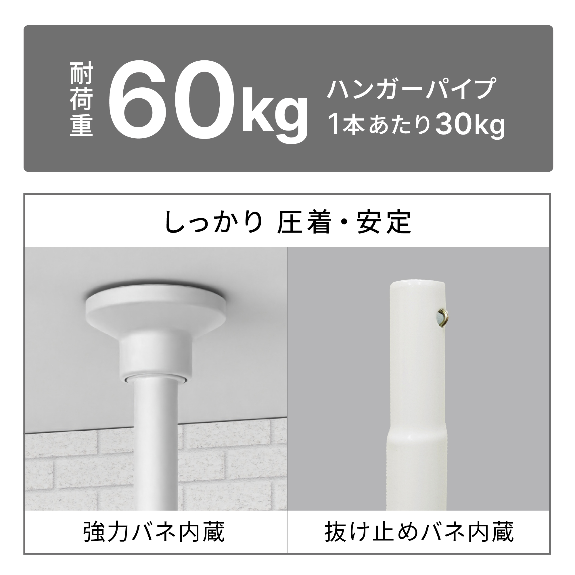 耐荷重60kg(ハンガーパイプ1本あたり30kg)